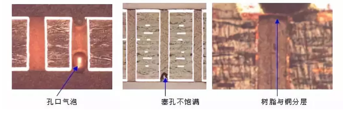A、孔口上面沒有辦法做出焊盤;孔口藏氣,芯片貼裝吹氣,也叫out-gassing